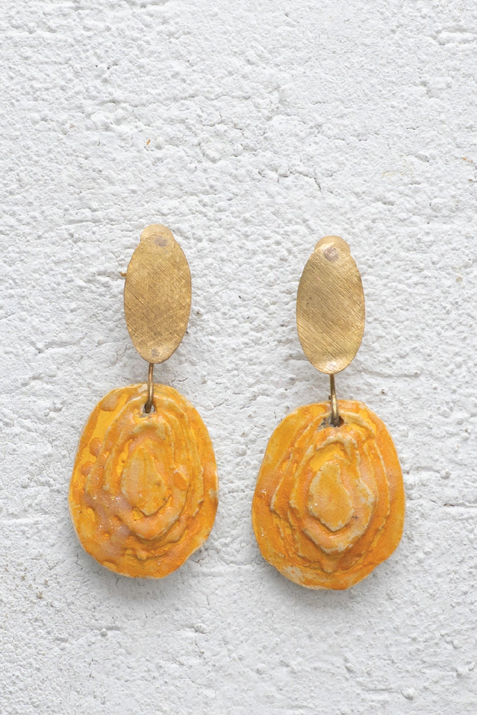 Experience the beauty of artistry in every detail with these handcrafted ceramic earrings, thoughtfully designed in fusion with brass. Each pair reflects refined craftsmanship — from the smooth ceramic finish to the warm metallic glow of brass.