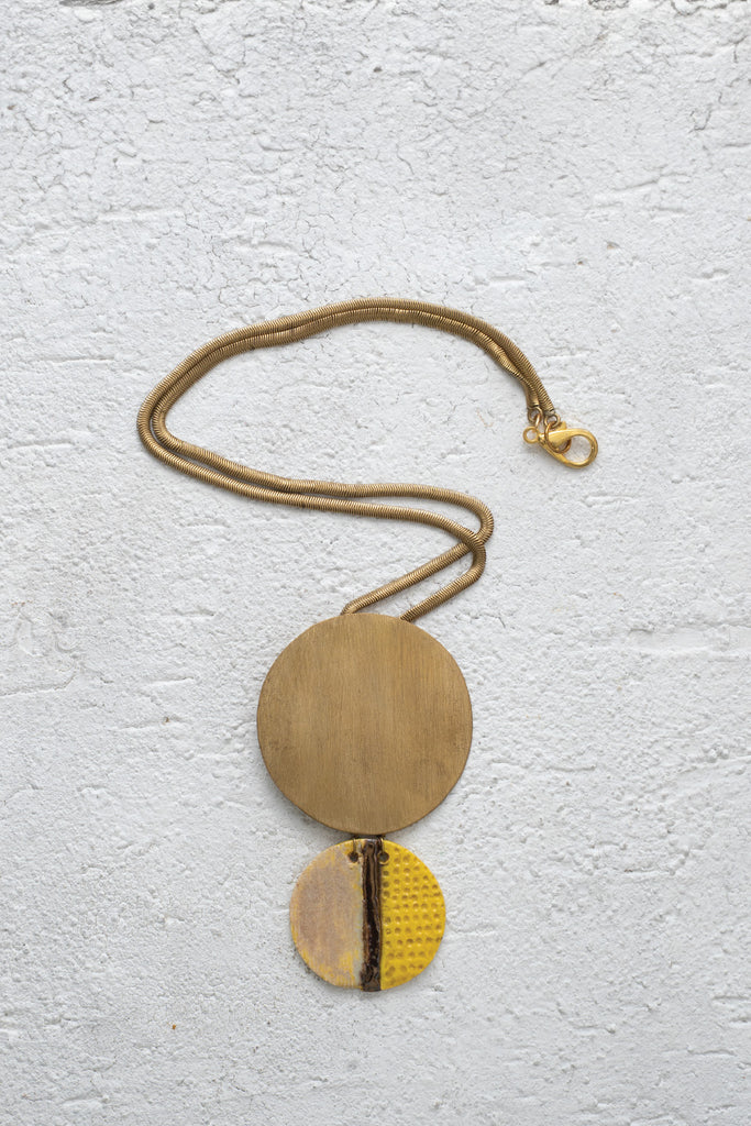 Make a statement with this handcrafted ceramic necklace, elegantly fused with brass detailing for a bold yet sophisticated look. Each piece is meticulously handcrafted by skilled artisans, blending traditional craftsmanship with modern design sensibilities.
