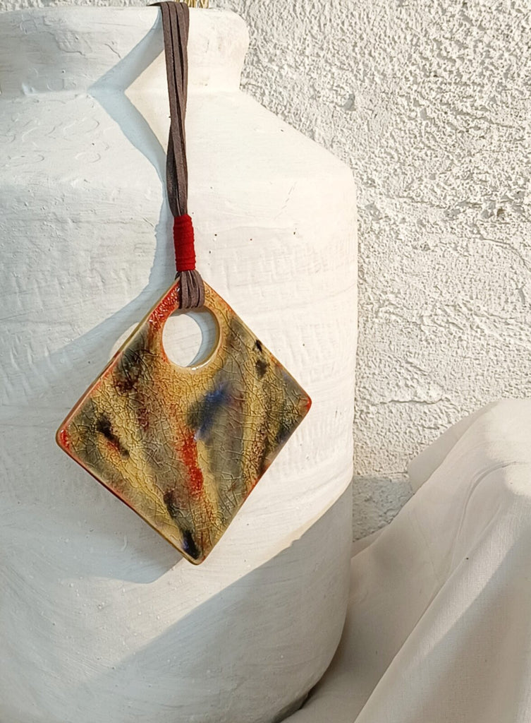 Our Jewellery is made from stoneware.Its rolled, carved, textured, bisqued and glazed.These go throughÊ firings twice and the temperature is as high as 1200 ¡C.