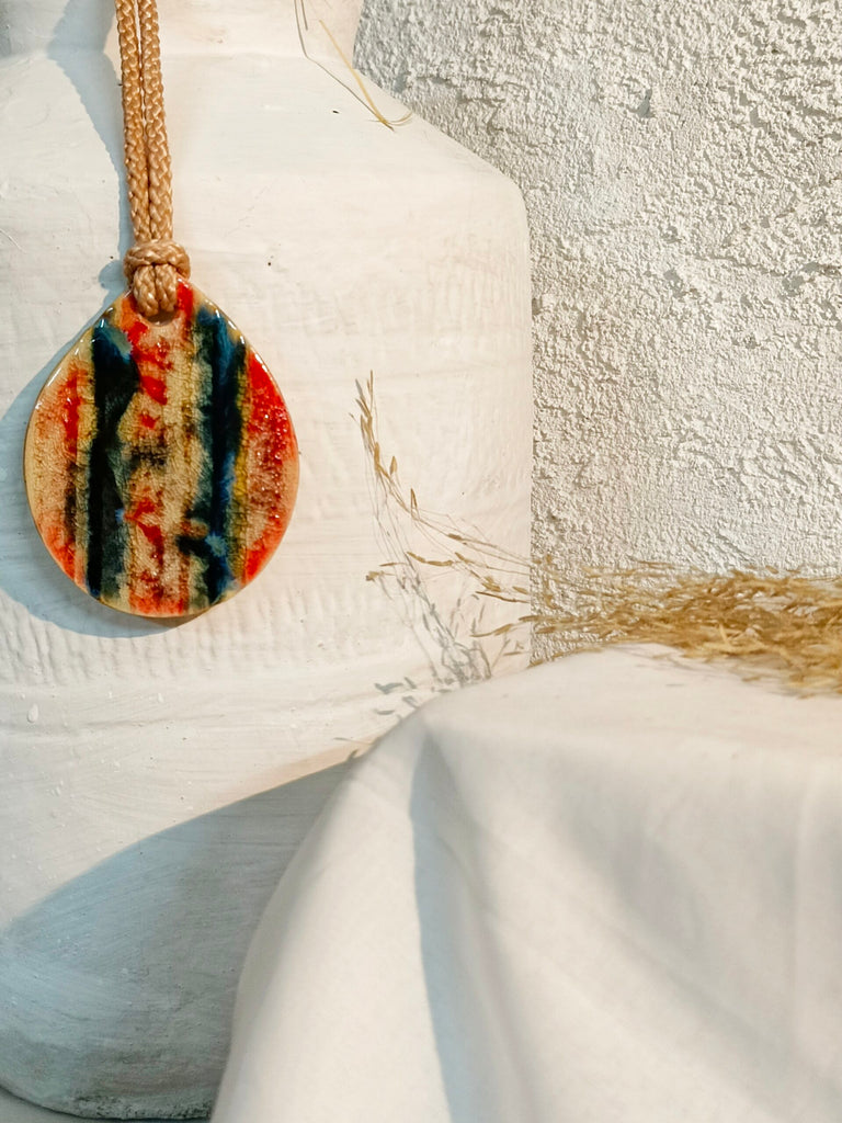 Our Jewellery is made from stoneware. Its rolled, carved, textured, bisqued, and glazed. These go through firings twice and the temperature is as high as 1200 ¡C.