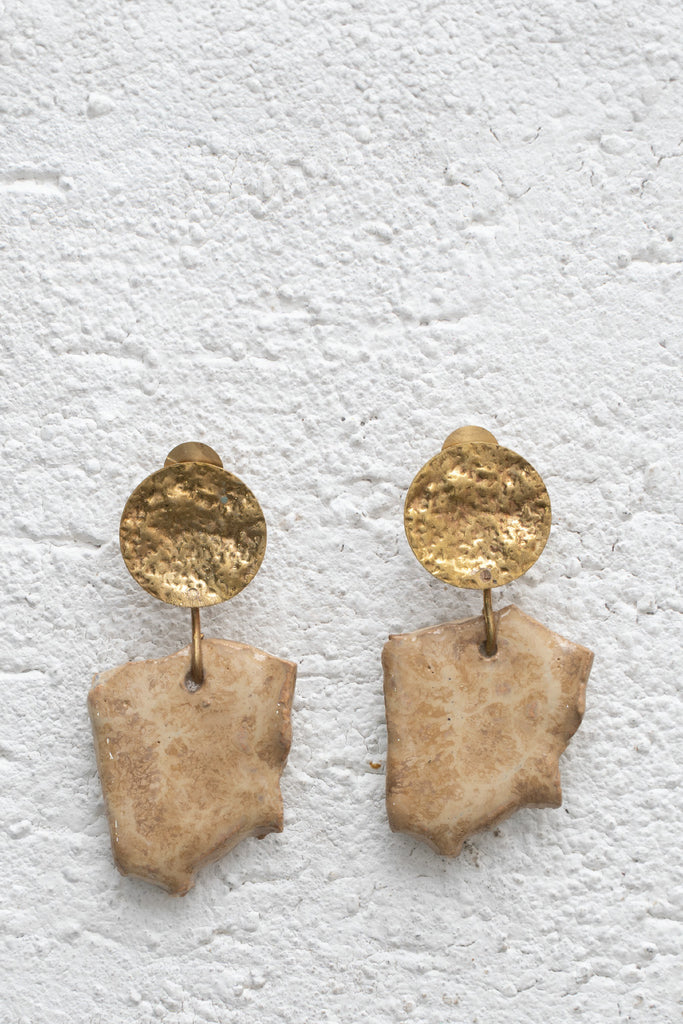 Add a touch of elegance with these handcrafted ceramic earrings, thoughtfully fused with brass accents. Each piece is meticulously crafted by skilled artisans, highlighting the charm of handmade jewelry with a modern, minimalist design.