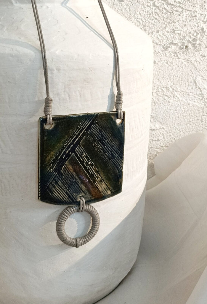 Our Jewellery is made from stoneware.Its rolled, carved, textured, bisqued and glazed.These go throughÊ firings twice and the temperature is as high as 1200 ¡C.