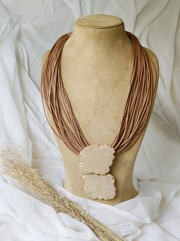 Our Jewellery is made from stoneware.Its rolled, carved, textured, bisqued and glazed.These go throughÊ firings twice and the temperature is as high as 1200 ¡C.