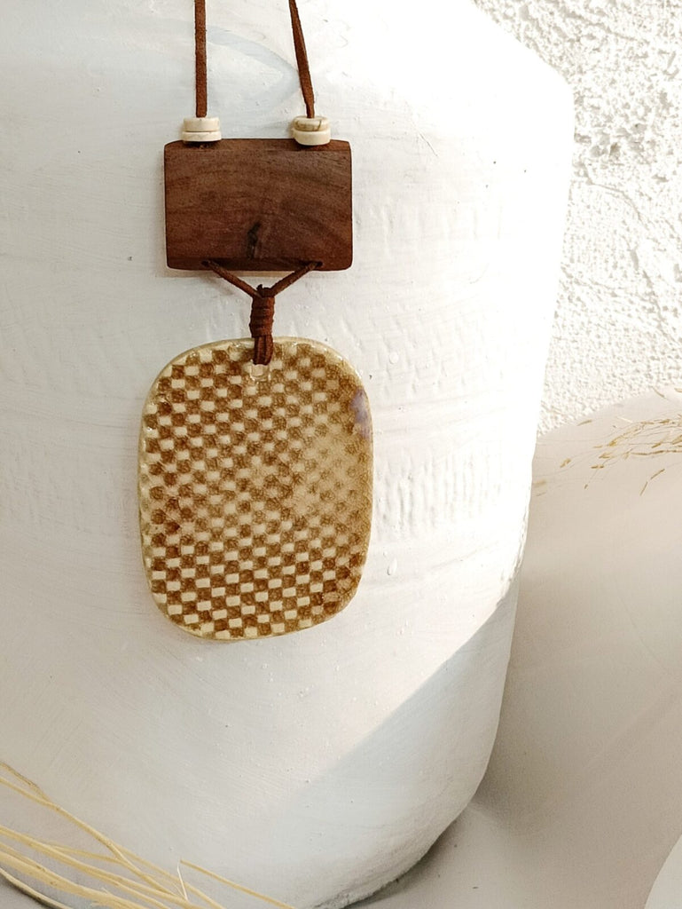 Our Jewellery is made from stoneware.Its rolled, carved, textured, bisqued and glazed.These go throughÊ firings twice and the temperature is as high as 1200 ¡C.