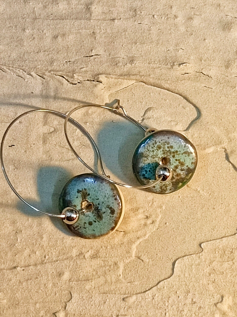 Our Jewellery is made from stoneware.Its rolled,carved, textured, bisqued and glazed.These go throughÊ firings twice and the temperature is as high as 1200 ¡C. \n \nThese pieces are adorned with different threads and embellishments and color may vary from screen to screen. \n \nThere might be metallic attachments at the back keeping the design aesthetics in mind. \n \nMost of the rings and earrings have a resin covering at the back to avoid the rough surface associated with ceramics.