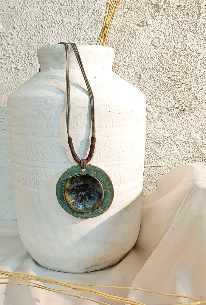 Our Jewellery is made from stoneware.Its rolled, carved, textured, bisqued and glazed.These go throughÊ firings twice and the temperature is as high as 1200 ¡C.
